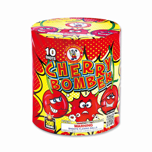 This 10 shot 200g cake features bright red dahlias with white strobes and crackes.
