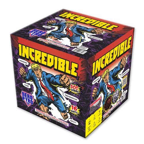This 500g cake from Dominator has big breaks and colorful effects. Puts on an amazing, huge and tremendous show! Trump cake
