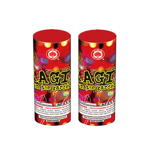 This fountain puts on a nice show with colors and crackling.  Lasts about 30 seconds each.