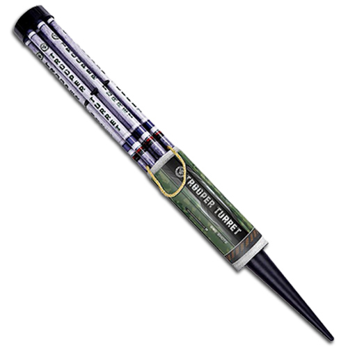 Trooper Turrent is the newest style of large roman candle.  This new must have itema has 240 shots and lasts almost a minute!  Thick gold tails with colorful balls and large crackling bursts and reports.  This thing is over 3 feet long!  Must see!